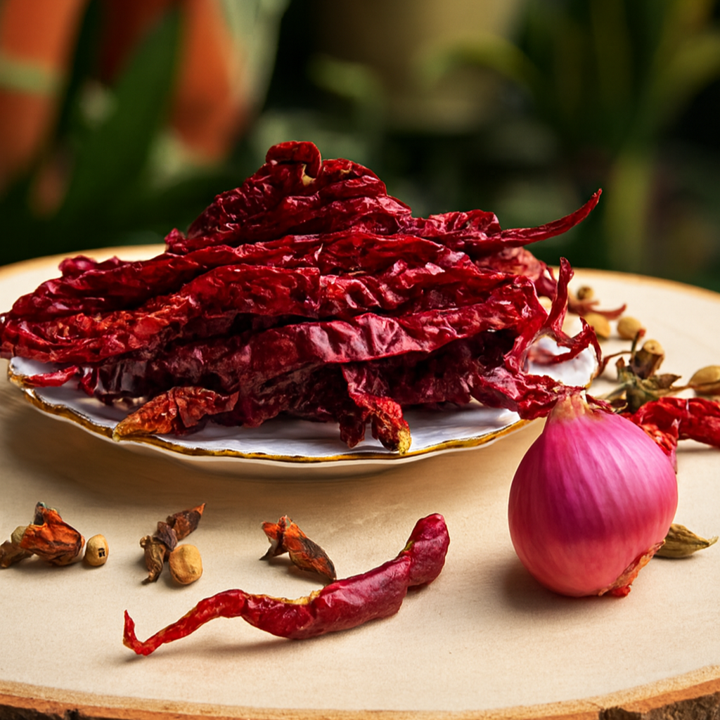 Our Sun-Dried Whole Red Chillies are the backbone of authentic heat. Hand-selected at peak ripeness and naturally dried to preserve their essential oils, these pods deliver a vibrant, smoky-sweet punch that store-bought flakes can’t match. Whether you’re building a complex curry base or infusing a signature oil, these chillies provide the perfect balance of stinging heat and rich, earthy undertones.